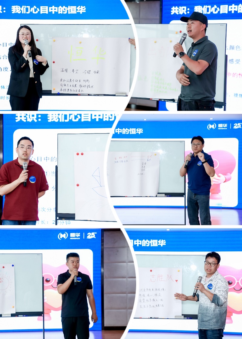 以《我們心目中的恒華》為題展開的如火如荼交流中,大家結(jié)合兩日培訓(xùn)營的學(xué)習(xí)及自身體會(huì),展開奇思妙想,通過繪畫共創(chuàng)的方式,描繪出對(duì)恒華文化核心理念的理解,紅色、綠色、黃色、藍(lán)色、橙色......,妙筆生花,每個(gè)人心中充滿希望、溫暖、熱情、生生不息的恒華,以一幅幅五彩斑斕的畫卷呈現(xiàn)在我們眼前。